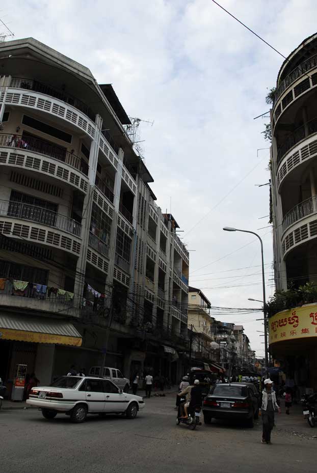 The only solid period of sleep I managed, with the bumping and the horn beeping and the arctic AC, about which I think I have already complained in these pages, was just before we rolled on into Phnom Penh. I woke up just as we were crossing the huge concrete bridge over the Mekong. And it was sort of refreshing to find ourselves somewhere we had already seen, and knew where the supermarkets and ATMs were. Not that we’d have much opportunity to frequent the ATM, being just about out of money entirely.