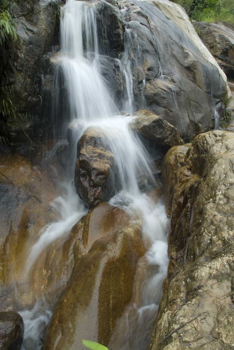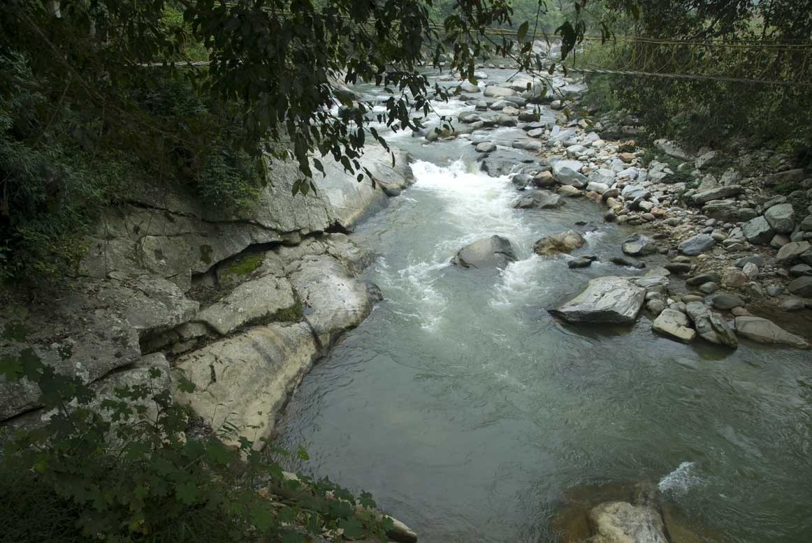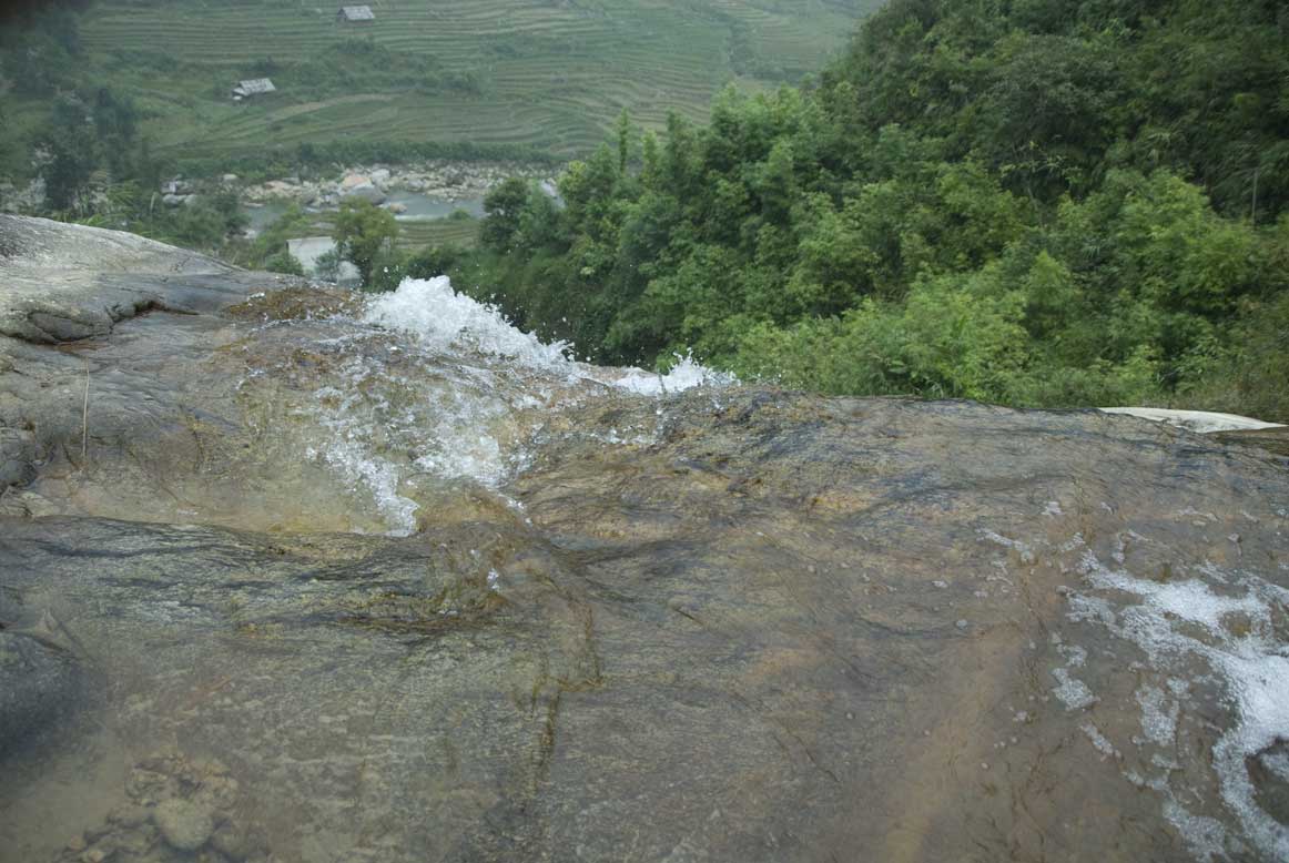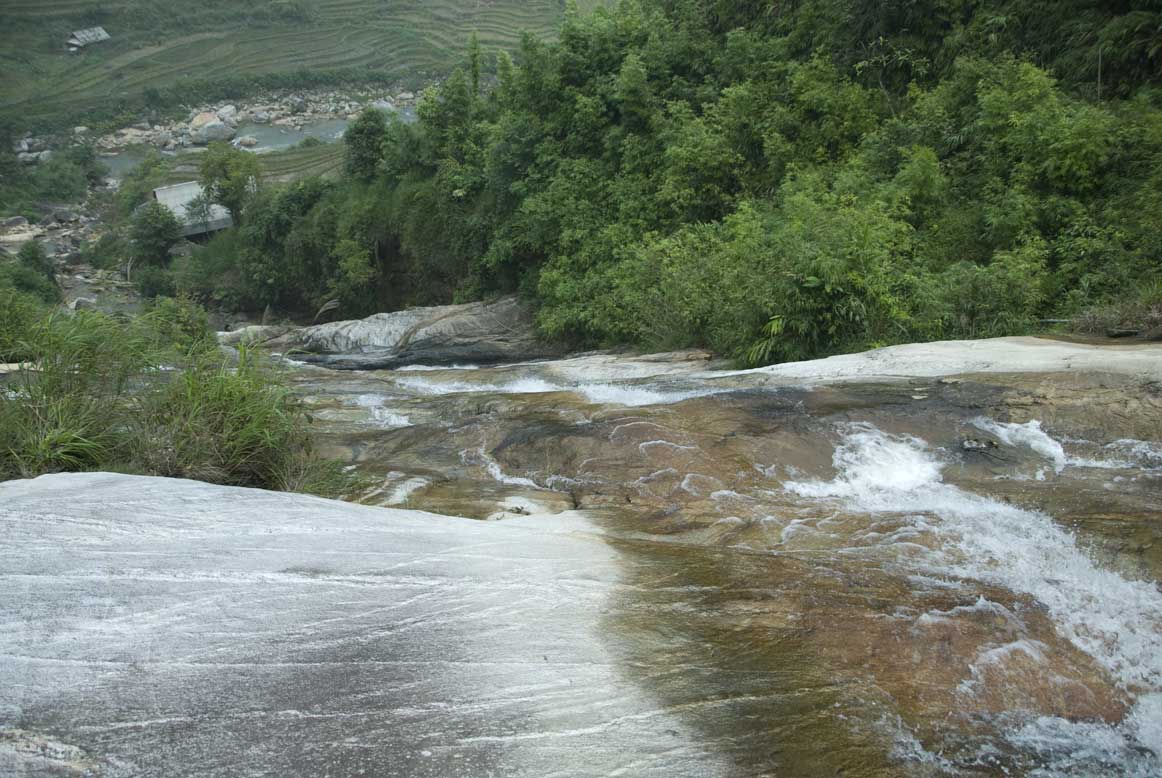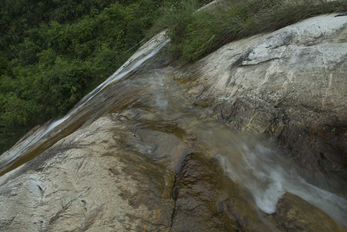 We followed the river for a little while after our break, but eventually had to turn back up the hill, and back into the steep and occasionally rocky tracks, which you can imagine presented Xuan with absolutely no difficulty whatsoever. At a point where a stream down into the river ran under the trail, he pointed out a rustic outdoor toilet, set romantically above the water.